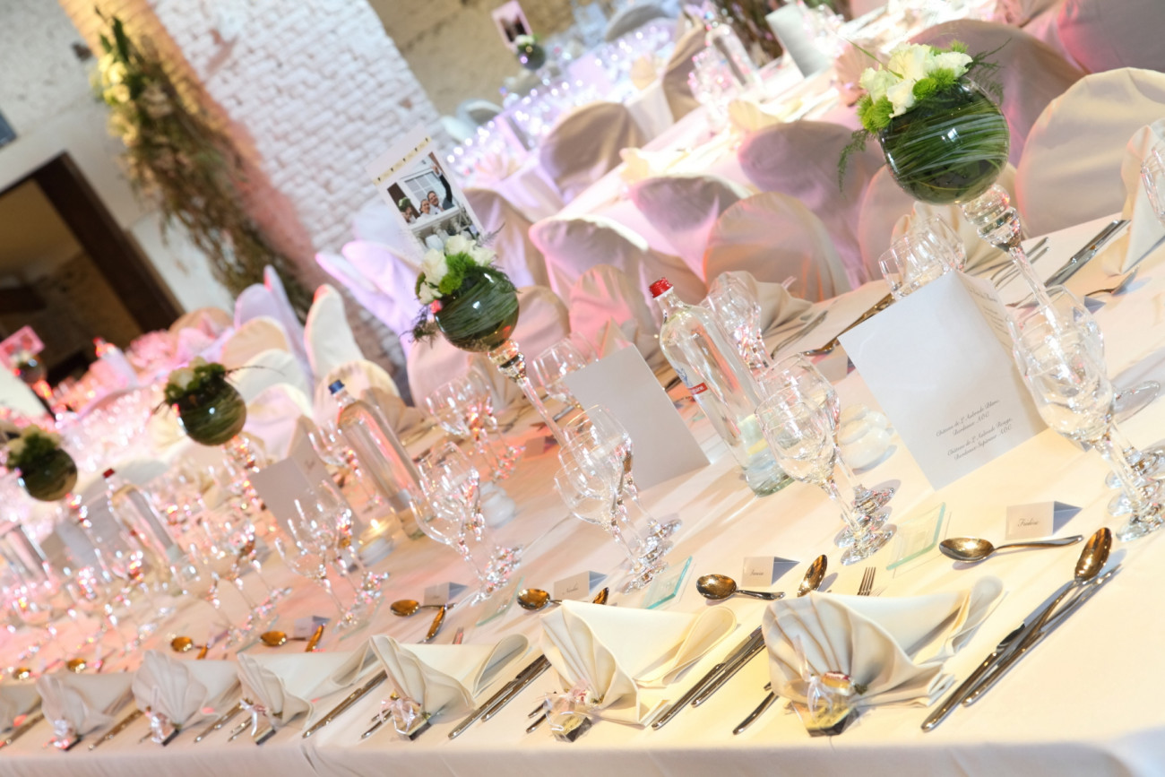 Les mots d’ordre pour votre [décoration de table de mariage](https://www.banquetslocations.be/inspirations/idees-decoration-table-mariage/1) chic ? **Élégance et la simplicité**. Évitez les décorations trop chargées. Choisissez du **mobilier classique** et **travaillez le nappage** : des nappes blanches tombant jusque au sol pour les tables, et des chaises intégralement nappées de blanc, de gris clair ou, pourquoi pas, un mélange des deux. Au niveau des couleurs, tournez-vous vers les tons pastel comme le rose pâle ou le lilas pour les fleurs et les serviettes. Dans un mariage chic, on opte pour un pliage de serviettes original et soigné. Côté couverts, c’est le moment de sortir **l’argenterie ou l’inox cuivré**. Misez aussi sur les jeux de lumière avec des chandeliers et des bougies dont la lueur se reflètent dans le verre ou pourquoi pas le cristal. Vous pouvez ajouter d’autres éléments pour créer une décoration de table de mariage chic : - des objets de déco dorés ou argentés apportent une touche d’élégance mais n’en abusez pas. Les objets cuivrés sont aussi très élégants et chics ; - de grands **chandeliers** en verre, en argent ou en cuivre au centre de la table entourés par quelques photophores plus petits ; - des **compositions florales volumineuses** mais qui n’empêchent pas les invités de se parler. Choisissez des fleurs chics comme les arums qui permettent des compositions en cascade, des orchidées, des roses ou des lys ; - une belle papeterie en lien avec le code couleur pour les marque-places. Vous avez toutes les cartes en mains pour faire de votre mariage chic la plus belle journée de votre vie !